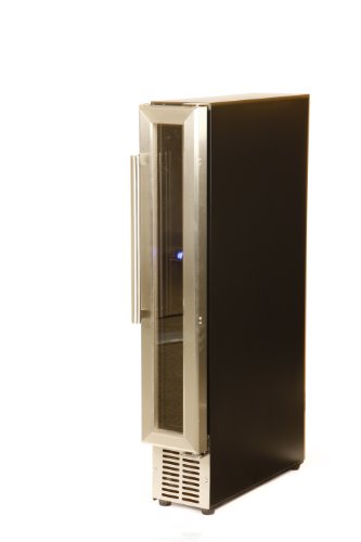 PRODUCT DESCRIPTIONS:- Energy Efficiency: 'B' - Annual energy consumption: 170kWh/annum (based on standard test results for 24 hours) Actual energy consumption will depend on how the appliance is used and where it is located - Storage volume: 19litres - Rated capacity: 7 bottles (750ml standard bottles) - Climate Class: 'N' (This appliance is intended to be used at an ambient temperature between 16?C and 32?C) - Noise level: 46dB - Installation type: Built In - Black and Steel finish - Bar handle - Tinted glass door (reversible) - 6 wire shelves - Digital Temperature Display - Cool Interior light - Temperature settings: 5-18?C Ambient Temperature Range: 5 - 35°C Vibration Free Compressor Typical Energy Usage: 245kWh/Year Noise Level: 35dB – barely above a whisper Key Features: 15cm wide wine cooler 7 bottle capacity Temperature range: 5-18°C Triple glaze tinted door Steel and black design