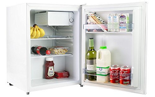 PRODUCT DESCRIPTIONS:This lightweight, compact fridge in white is perfect for all your refigeration needs. The fridge is ideal in all places with a limited space. Great for bedrooms, gamesrooms, hotel guestrooms and even living rooms. Featuring a 70 litre capacity, two removable shelves and two removalable door racks, the fridge is fully customisable to cater for anything. Not only that, an ice box makes for top convenience. We advise that you leave your fridge still for 3 hours before use to allow the gas to settle. Energy Rating: A* Ice Box Dimensions 95mm (H) 180mm (W) 270mm (D)