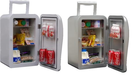 PRODUCT DESCRIPTIONS:Keep you food and drink cool on the go in your car, home, office or caravan with the handy Norko Chill Mini Fridge. It's perfect for road trips and great for parties and watching the footie, as you can plug it in right next to your sofa! It's sleek design and retro style door opening mechanism look the business and if you find your colleagues in the office are always stealing your treats, its small enough to keep under your desk at work too!