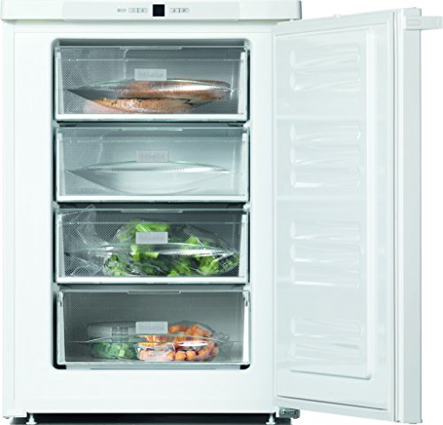 PRODUCT DESCRIPTIONS:This compact freestanding Miele freezer is ideal for smaller kitchens, under worktops, or for use as a second freezer. Its four spacious drawers are sealed to prevent contamination in case of spillage, making it easy to keep clean and protecting your food from contamination. Even better, to ensure you're not disturbed by humming, its intelligent technology means its noise levels are kept to a minimum, keeping your kitchen quiet and peaceful. This exceptional freezer boasts an energy efficiency rating of A++, meaning it runs on 44% less energy than an A rated freezer. We've also put it through a series of intensive tests to simulate up to 20 years of use, meaning you'll be able to rely on it for many years to come