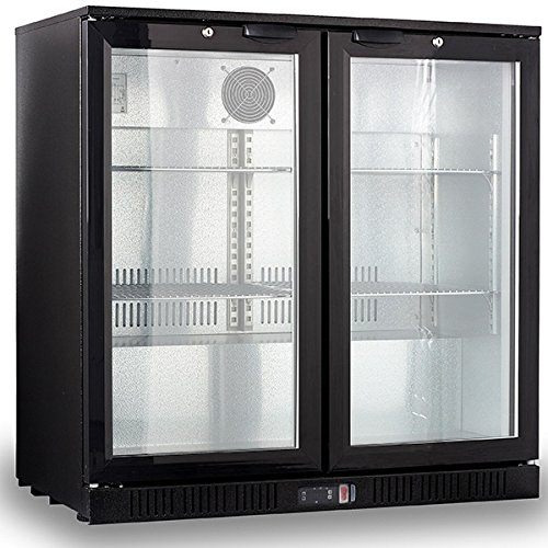 PRODUCT DESCRIPTIONS:Double door bottle cooler ideal for any pub or restaurant back bar. The unit has self-closing hinged doors LED lighting and capacity for 190 x 330ml bottles. Other features include automatic defrost, electronic control and stylish black finish. Please note: due to operational noise levels this product may not be suitable for home use.