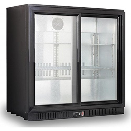 PRODUCT DESCRIPTIONS:Double door bottle cooler ideal for any bar or pub or restaurant. The cabinet features self-closing sliding doors, two shelf per door section and capacity 190 x 330ml bottles. Other great features include LED internal lighting, door lock and electronic controls ensuring reliable and fuss-free operation. Please note: due to operational noise levels this product may not be suitable for home use.